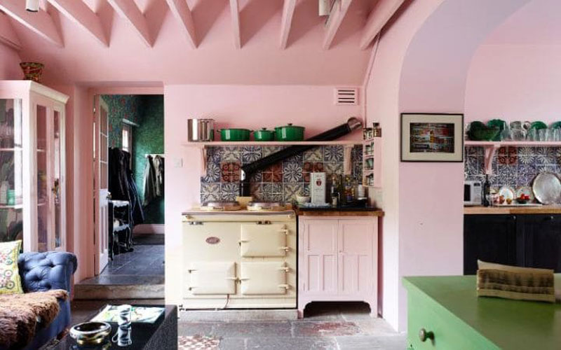 Taking a stylistic swerve now but I’m doting on this beautiful country house kitchen, as seen in the home of all time girl crush Solange Azagury Partridge. Pale pink is the perfect choice for a country house and the green painted cabinet and collection of green Le Cruset pots and plates really make it pop. As they are on opposite side of the colour spectrum you always get that high contrast which I love.