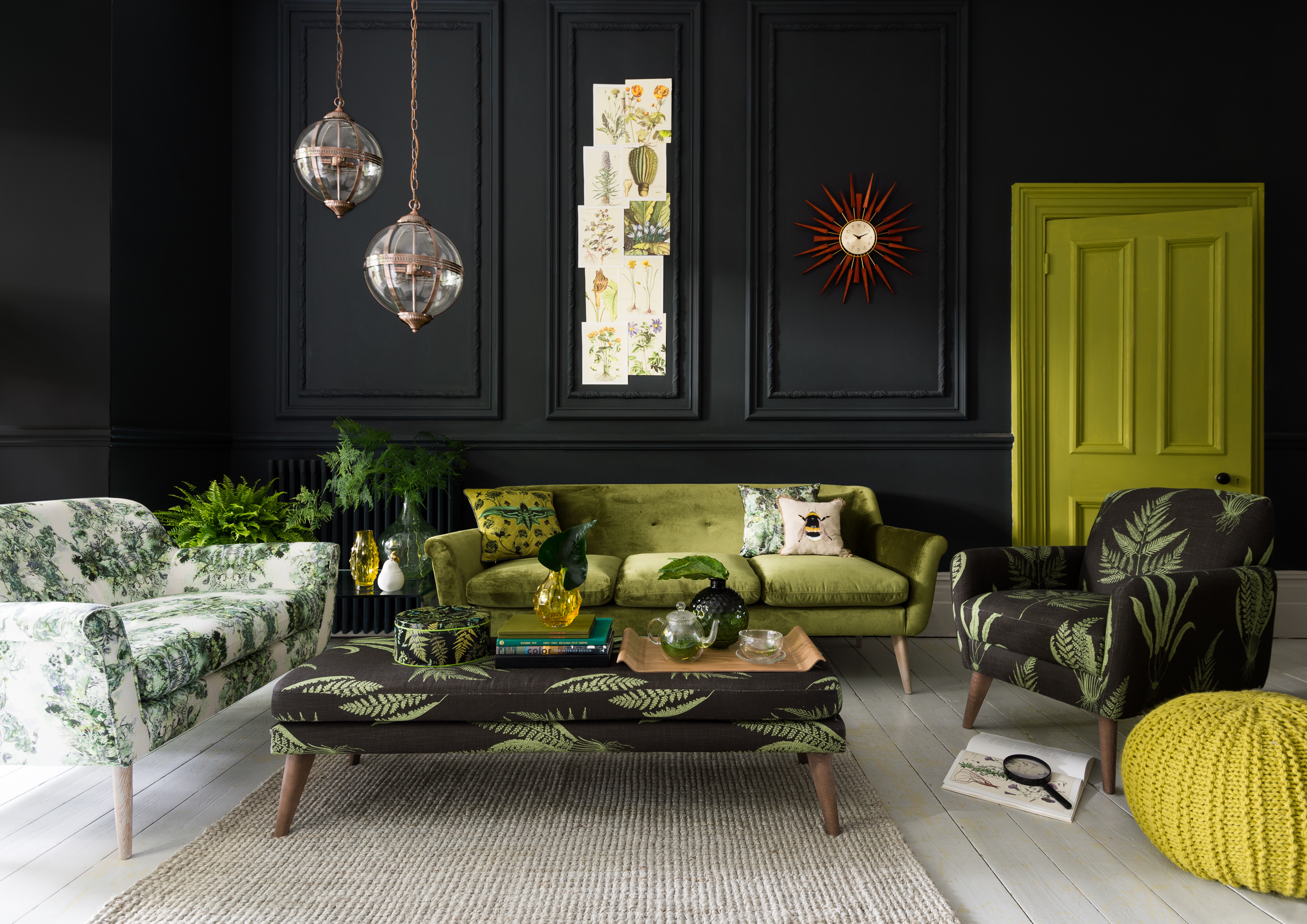 So here’s where I stand with the little powerhouse of a colour. First off I do kind of love its perkiness but I’m seeing it as a pop rather than a wall-to-wall affair. You could keep it fresh with its obvious crisp white but I’d much rather see it with the dark stuff. Green looks alluringly crisp next to the sultry greys and dark forest greens. There’s no easier way to add the colour by introducing some botanical prints and plants to the design. House plants are officially cool again if you missed the memo!