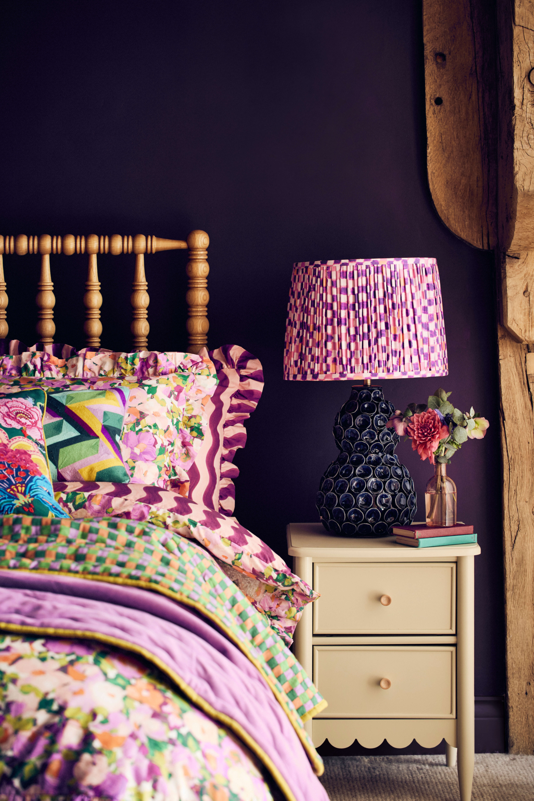 Choose bed linen in a bold fresh print that feels joyful and inviting. Either pick a design that includes colours already in the room so the bed quietly holds the whole scheme together, or if the walls are a bit of a blank canvas then the bedlinen can really do all the heavy lifting, especially if you go for something bold and bright. Choose a print that works with your style, vintage florals, modern blooms, a smart stripe or something graphic. There are so many incredible designs to choose from, and because the bed is the largest piece of furniture in the room, here is a real opportunity to make impact. I personally love pillowcases with contrast piping or a little frill detail because it really elevates the whole look, and suits my maximalist ‘more-is-more’ aesthetic.